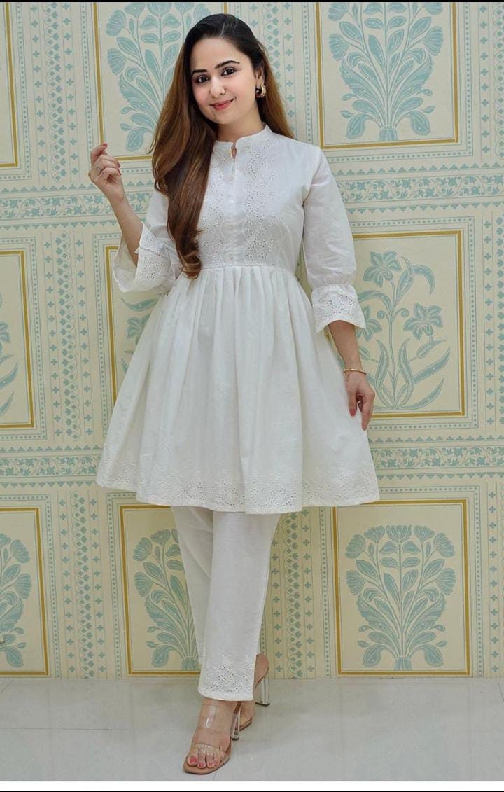 Kurti For Women White Kurta With Pant Ready Made 2 Piece Etsy Denmark